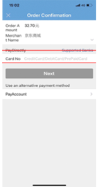 支付過程無跳轉,手機閃付In-APP可直接選卡無需輸入卡號或OTP