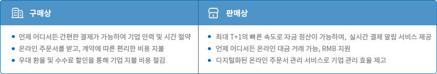 • 전 세계 구매상 및 판매상을 위한 연동 플랫폼 및 안전한 부가가치 서비스를 제공하여 B2B Cross-border 결제를 더욱 편리하게 만들었습니다.
