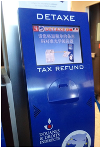 refund procedure at Tax Refund Kiosk or Tax Refund Service Counter.