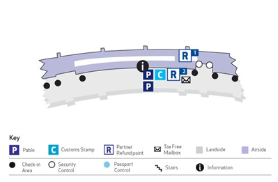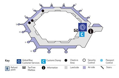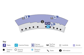 Locations of the Customs and Refund point at Larnaca International Airport: