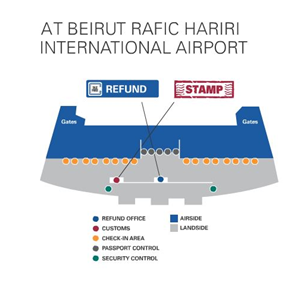 Locations of the Customs and Refund point at Beirut-Rafic Hariri International Airport: