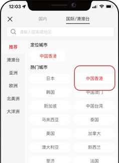 於首頁定位至「中國香港」