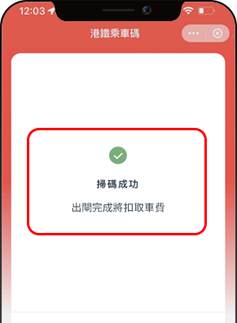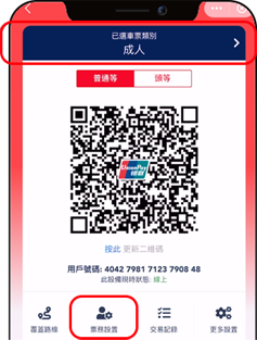注意:港鐵乘車碼僅適用於香港地鐵,若乘搭巴士或其他交通工具,請點選「乘車碼」使用服務。