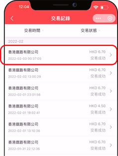 顯示交易紀錄清單,點擊查閱詳情