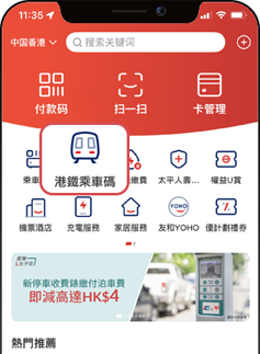 於首頁點擊「港鐵乘車碼」