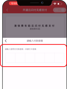 輸入雲閃付付款密碼